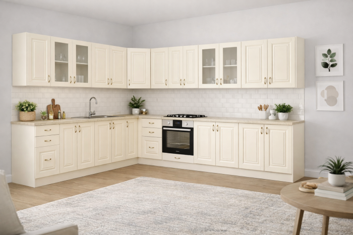 Bucatarie Roma Colt 1 (2.0 x (0.90x0.60 colt) x 2.6 m) MDF - Crem