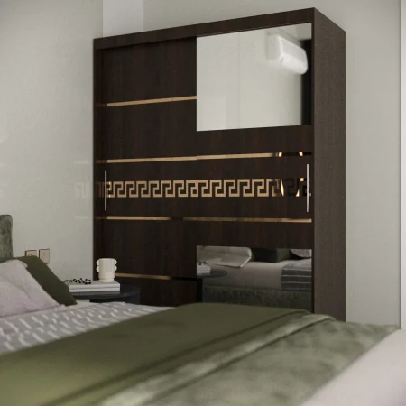 Acest dressing este o soluție practică și elegantă pentru organizarea hainelor și accesoriilor, fiind potrivit atât pentru dormitor, cât și pentru hol. Sistemul de uși culisante ajută la economisirea spațiului și oferă un acces facil la interiorul dressingului.