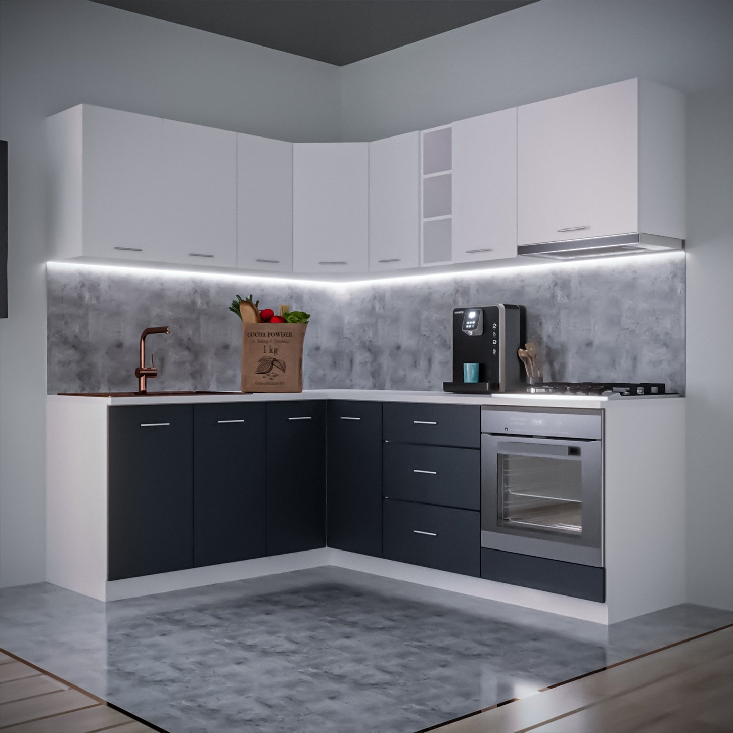 Bucatarie Sena Colt 180 x 220 cm Alb&Antracit