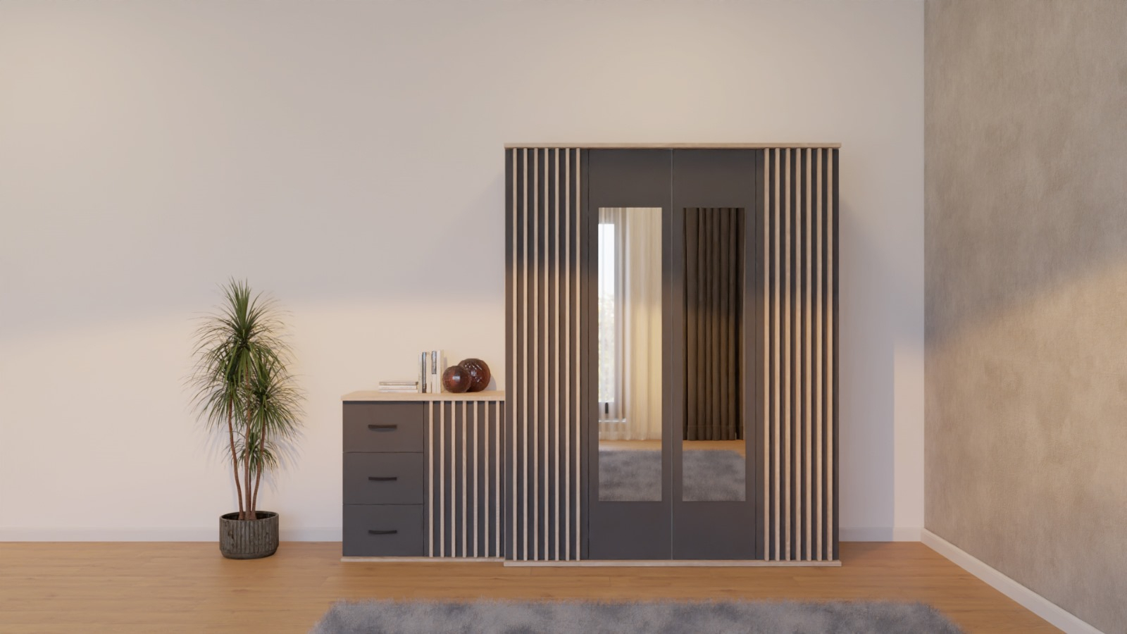 Ansamblul este realizat din PAL de 16mm, cant PVC si manere plastic.