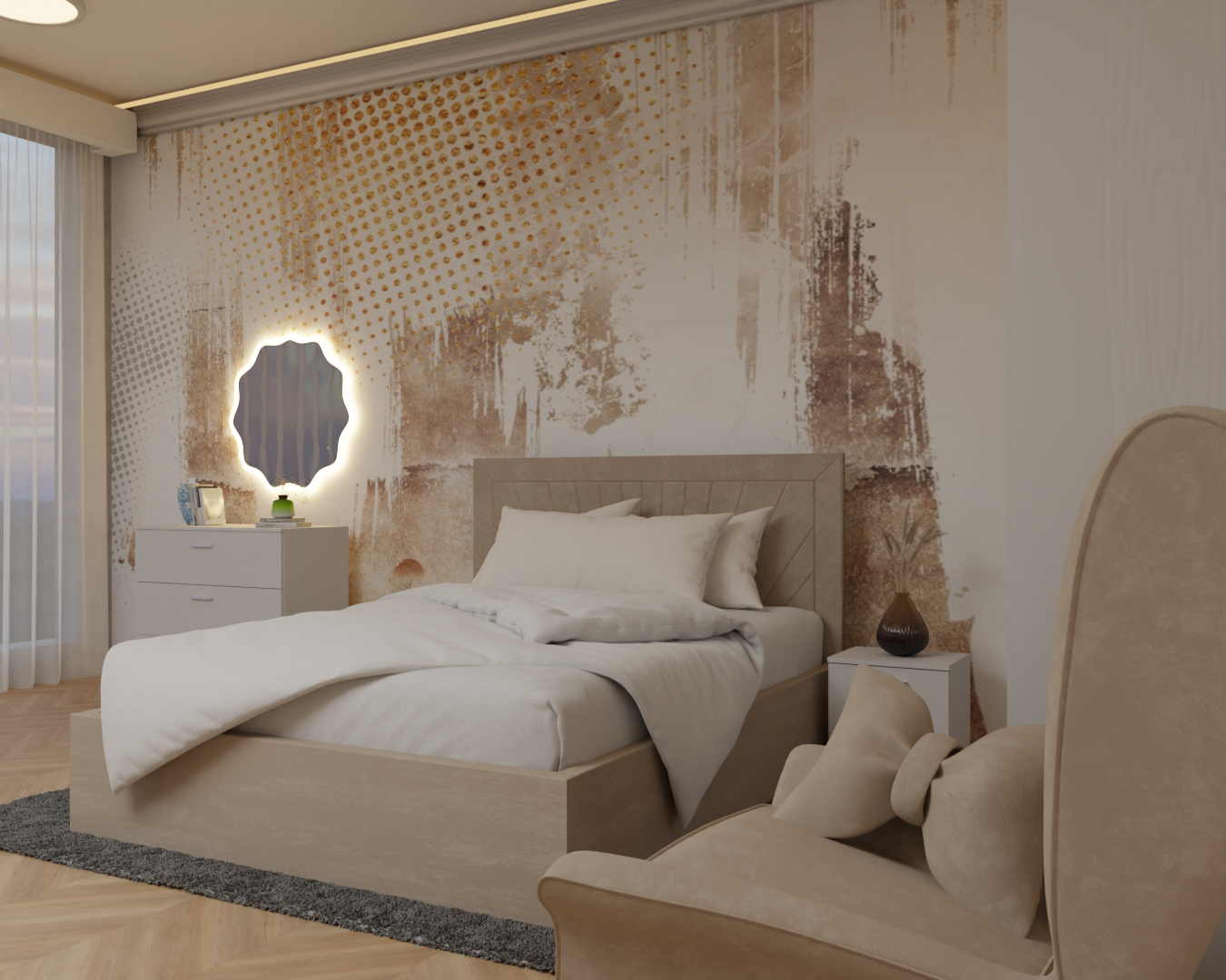 Dormitor Lotus Pat Tapitat Dressing 200x200 Alb cu oglinda