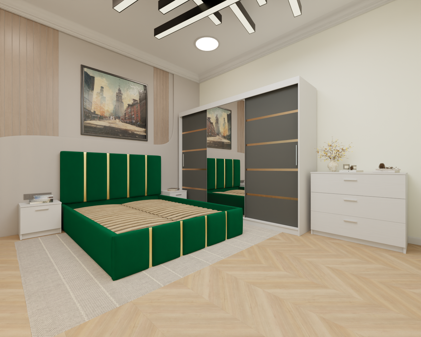 Alege Setul de dormitor MILANO fără saltea, un ansamblu de mobilier modern, conceput pentru confort, organizare și un design echilibrat. Ideal pentru dormitoare matrimoniale, acest set oferă spații generoase de depozitare și un aspect elegant, potrivit oricărui stil de amenajare.