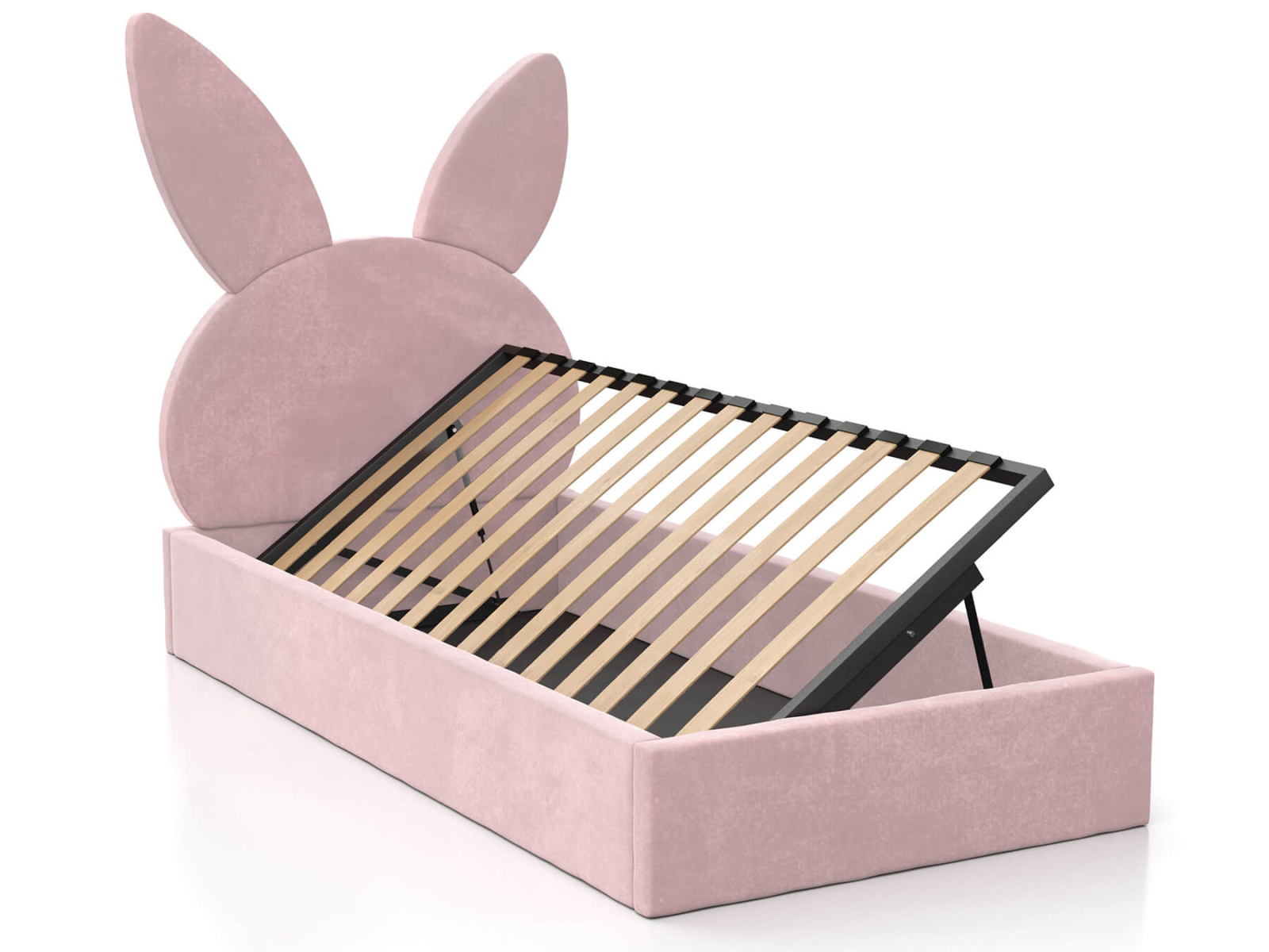 Patul Iepuraș cu somieră rabatabilă este conceput special pentru a crea un spațiu de dormit confortabil și funcțional, fiind potrivit atât pentru camere de copii, cât și pentru adolescenți sau camere de oaspeți. Designul său distinctiv, cu tăblie decorativă în formă de urechi de iepuraș, adaugă un element ludic și prietenos amenajării.