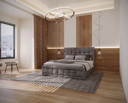Alege Patul Regal Tapițat pentru confort sporit și un aspect modern în dormitor. Tapițeria din stofă oferă o senzație plăcută la atingere și un plus de eleganță, iar tăblia moale este ideală pentru momentele de relaxare.