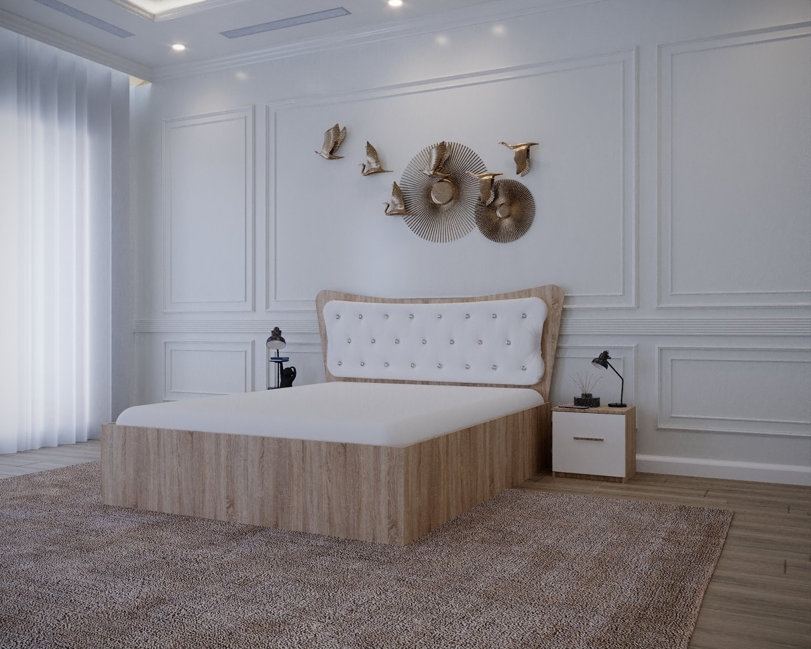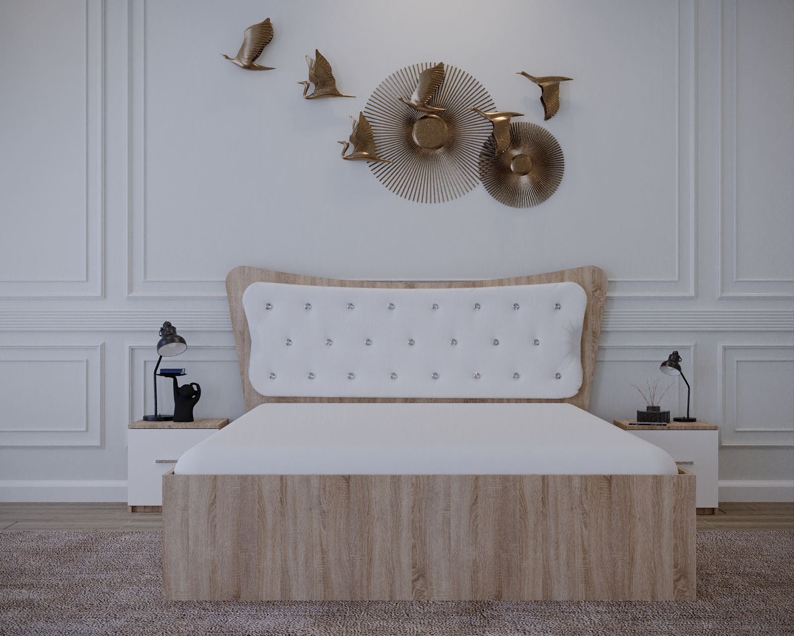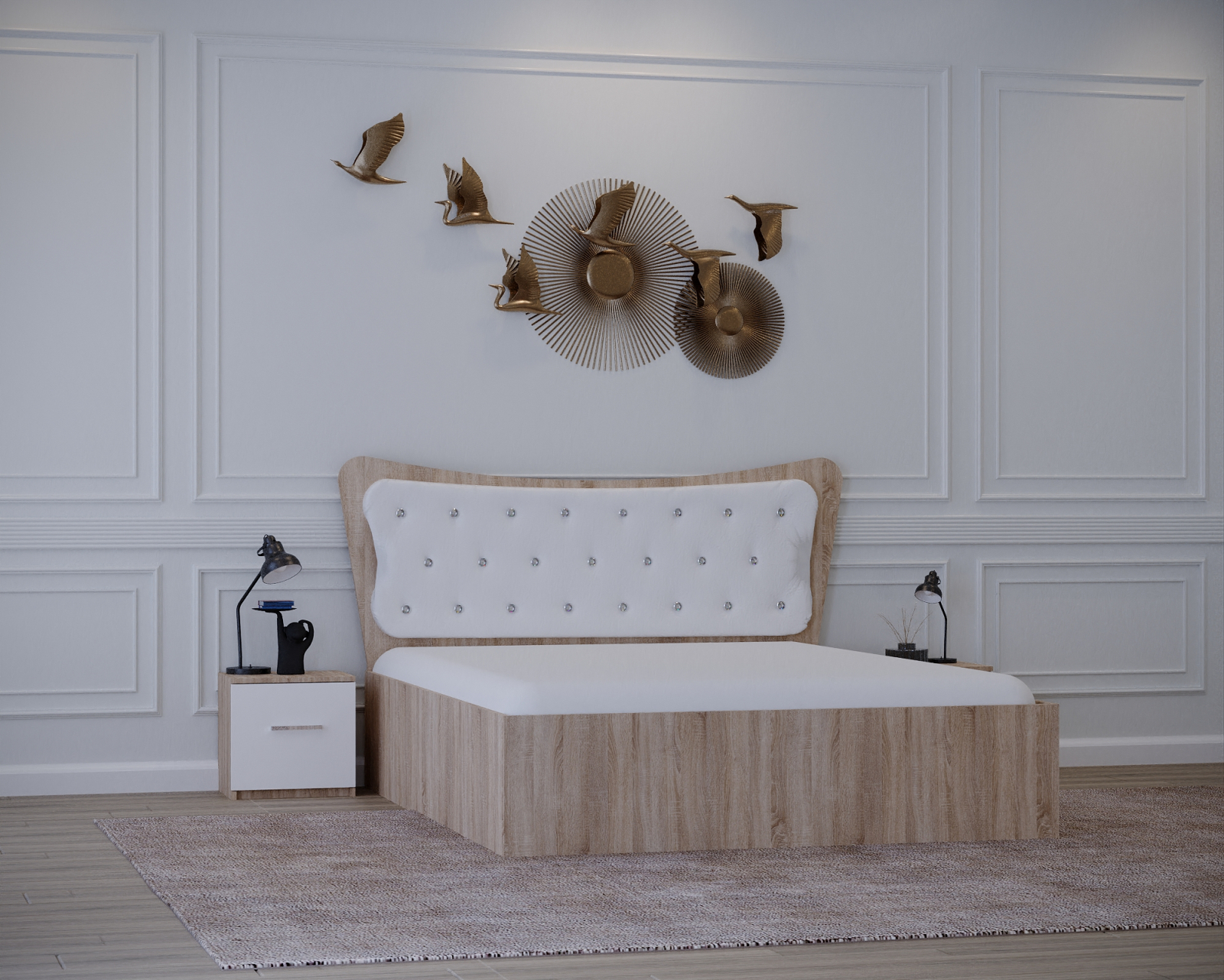 Set Pat Vista Tapitat Sonoma&Alb cu Noptiere