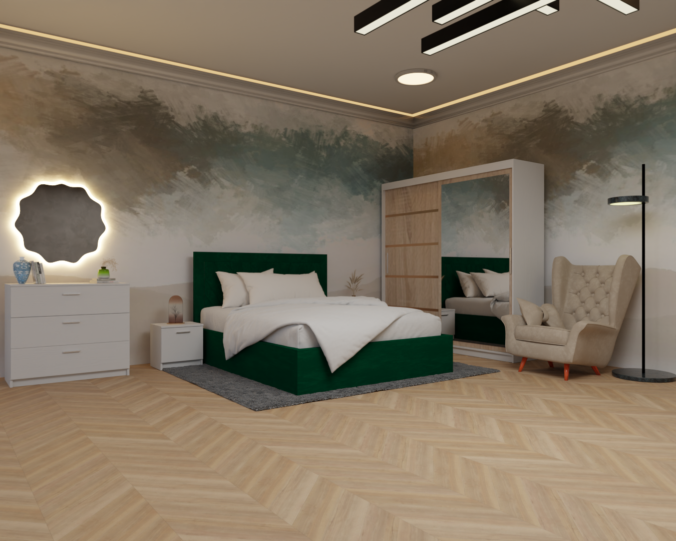 Setul se poate comanda si cu pat de 180 x 200 contra cost.