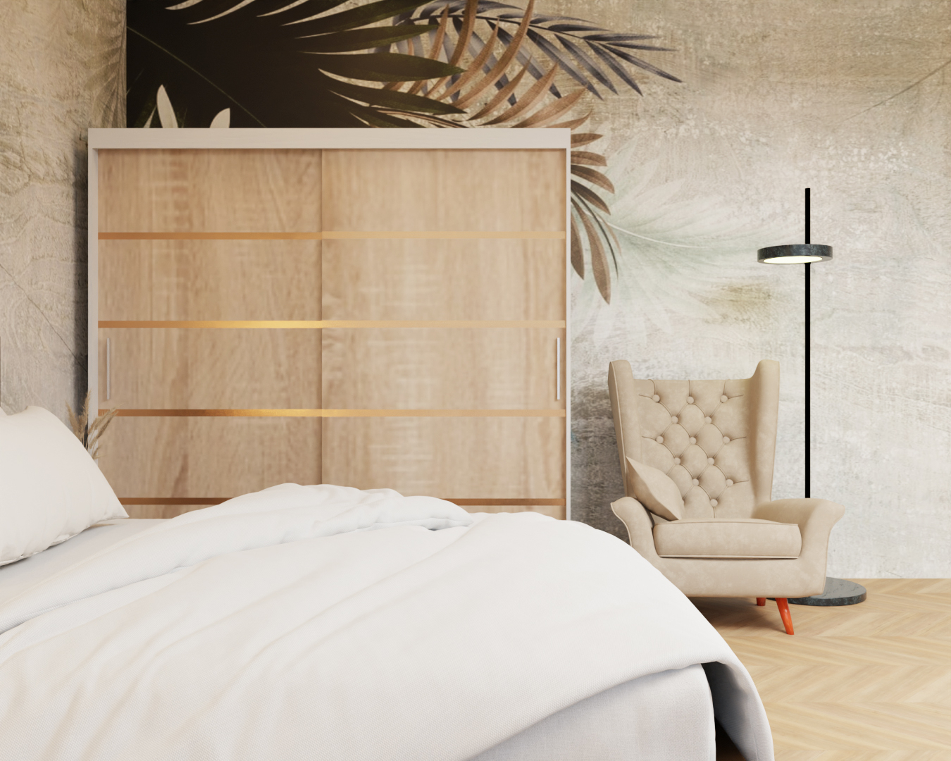 Dormitor: Lotus Pat Tapitat Dressing 200x200 Alb&Sonoma 2 Usi